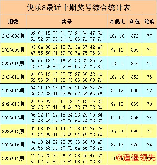 福彩快乐8第2026017期开奖回顾奖号:11 15 28 33 36 37 38 46 47 50 51 52 61 62 63 67 68 71 73 80,其中奖号奇偶比为11:9,和值为989,跨度为69。